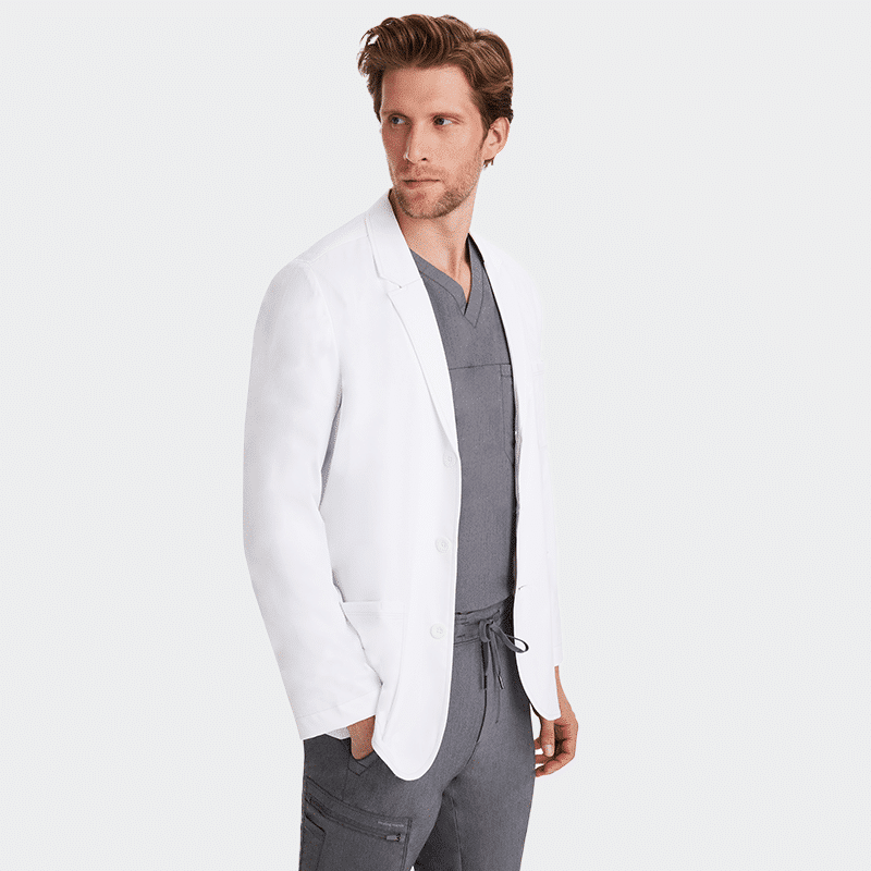 The HH LEO medical coat by Healing Hands is a men’s elegant blazer-style coat, ideal for upscale clinics and modern cosmetic centers.