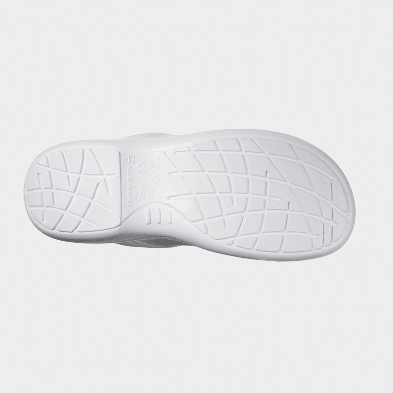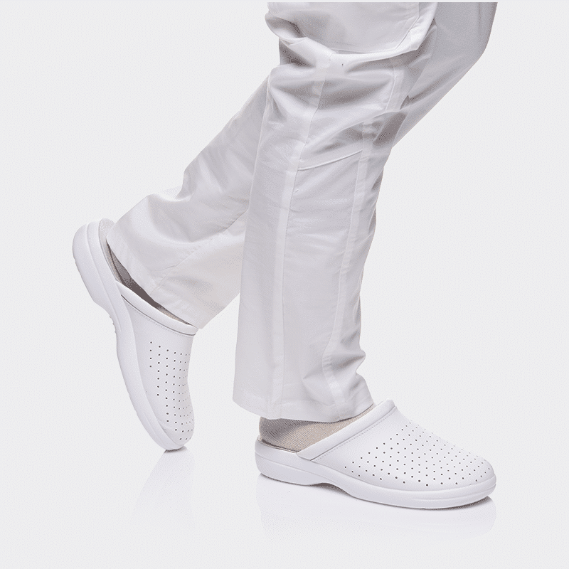 B-well AERIAL Man slippers are made of genuine leather in the front part. The sole is anti-slip from polyurethane, and the insole with an energy absorber in the heel area. Our medical slippers have a modern design in white color, and are light and comfortable throughout the work process.