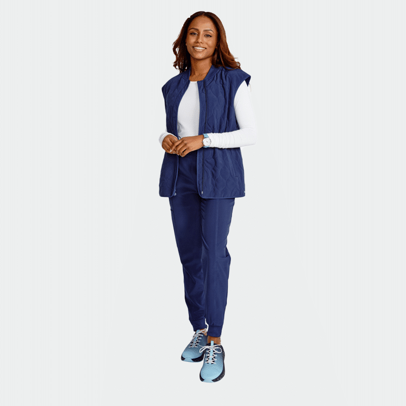 Medical, work vest ALLURA CKA570 is made of light material, a combination of polyester and elastane, guaranteeing excellent appearance, convenience and comfort and easy maintenance. It is suitable for the daily work of doctors, nurses, dentists, pharmacists, veterinarians, medical staff, workers and students.