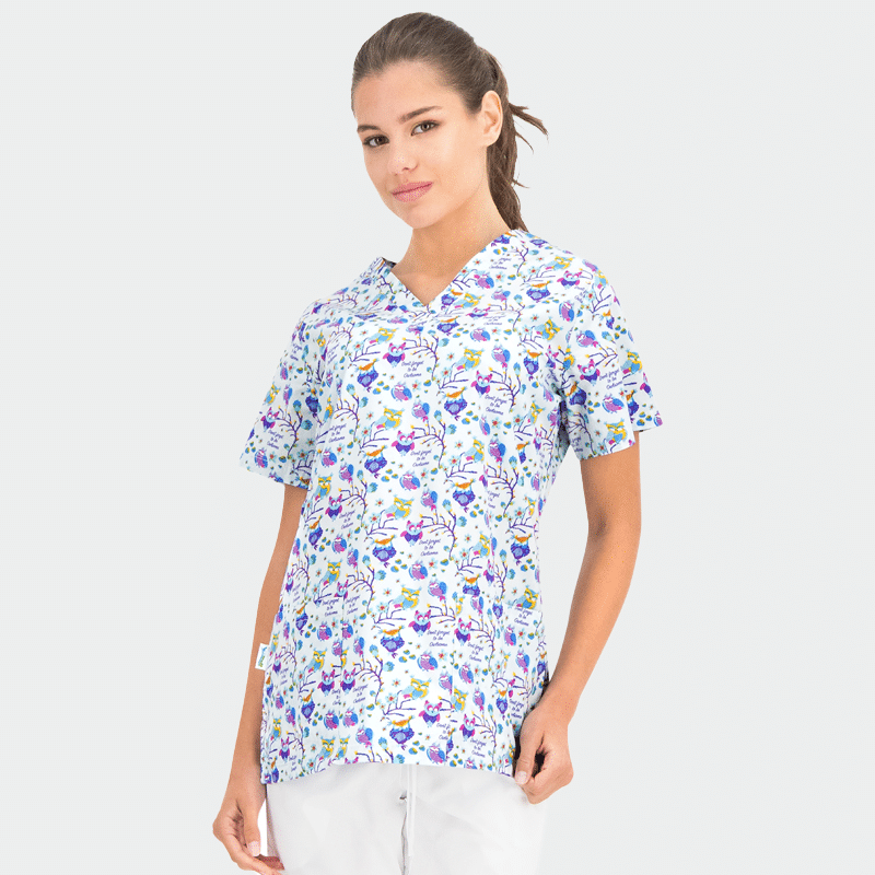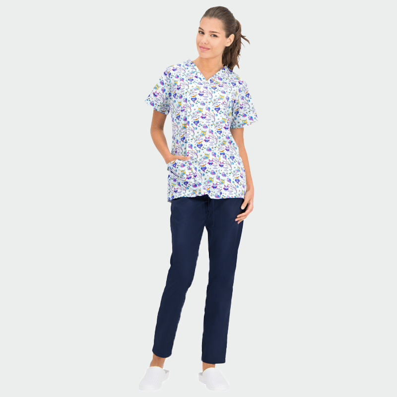B-well BAMBINA scrub top has fun patterns, suitable for children’s medical centers, dental offices, nurseries, veterinary clinics and many more. The model is practical and one of the best sellers from B-well’s medical clothing.