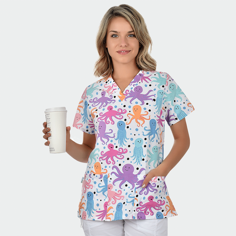 B-well BAMBINA scrub top has fun patterns, suitable for children’s medical centers, dental offices, nurseries, veterinary clinics and many more. The model is practical and one of the best sellers from B-well’s medical clothing.