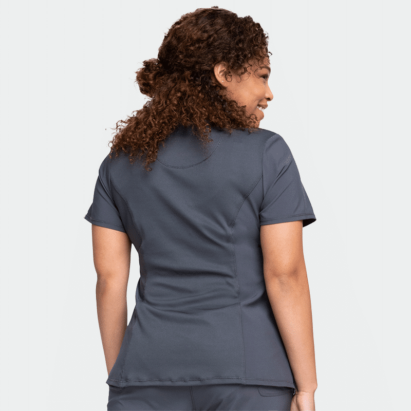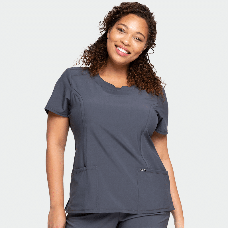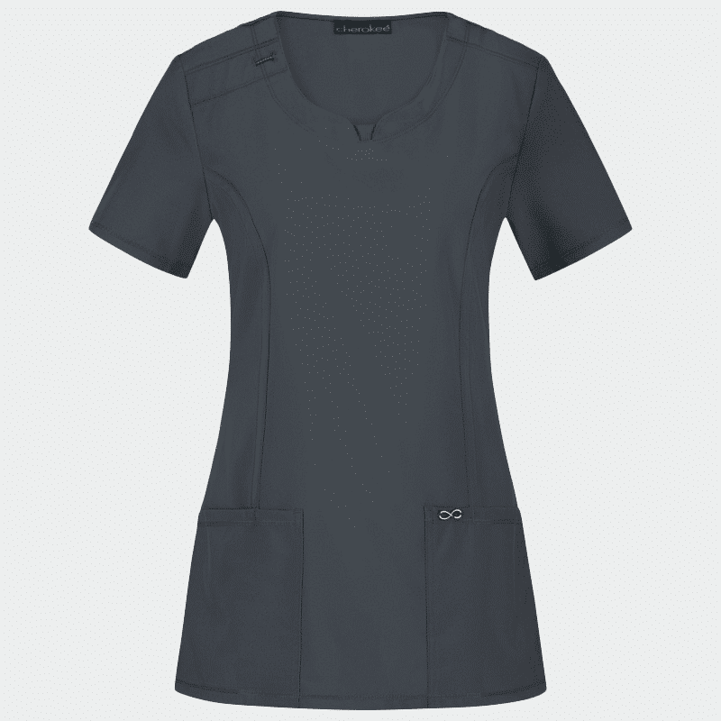 CHEROKEE INFINITY CKE 2624A scrub top is elegant with a regular fit and a modern look. The medical scrub top is made of 95% polyester and 5% elastane with a density of 175g/m².