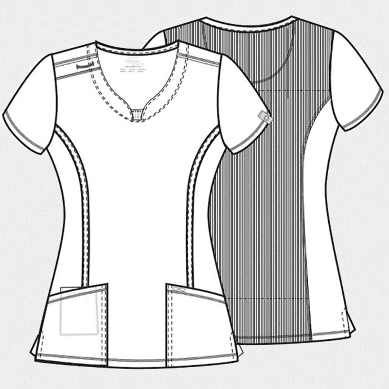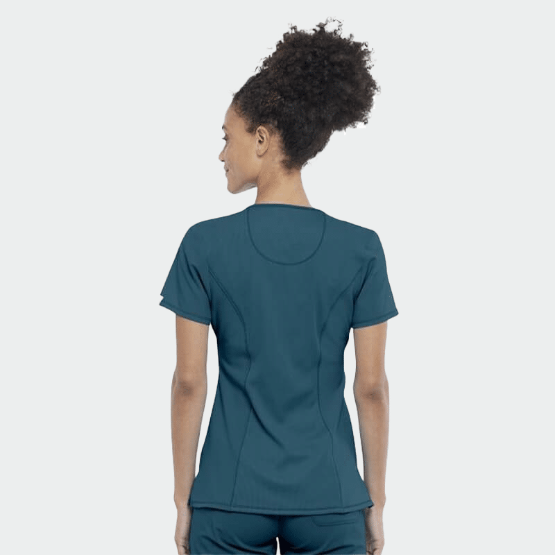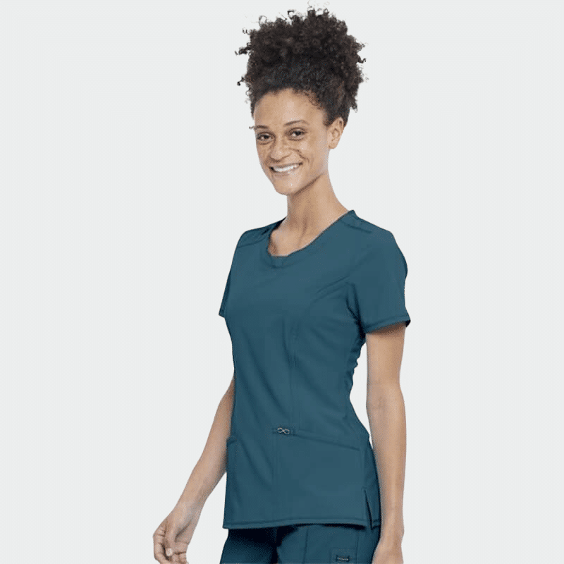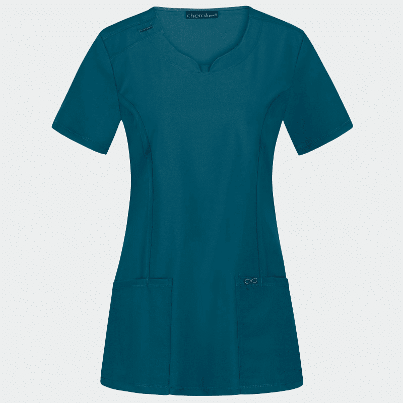 CHEROKEE INFINITY CKE 2624A scrub top is elegant with a regular fit and a modern look. The medical scrub top is made of 95% polyester and 5% elastane with a density of 175g/m².