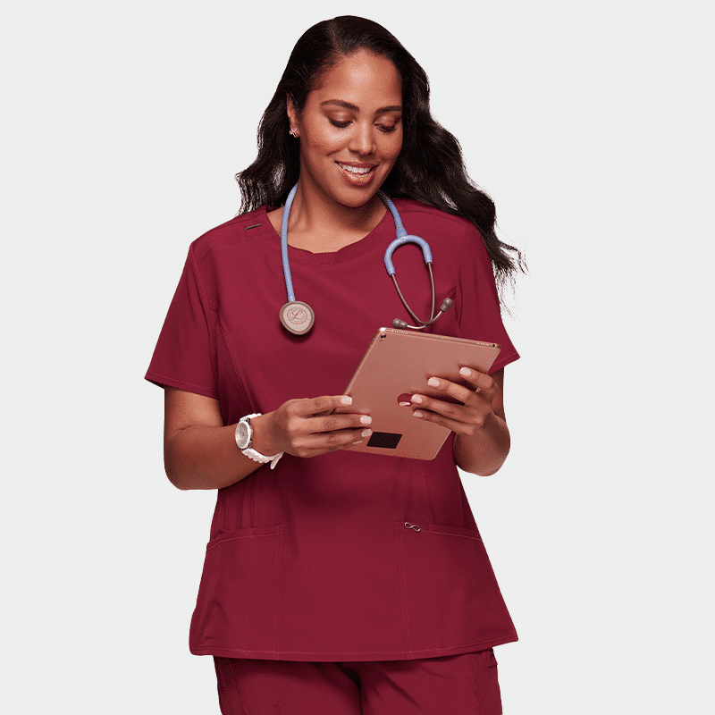 INFINITY CKE 2624A scrub top is made of polyester and elastane in 6 modern colors. The CHEROKEE work scrub top is soft, guaranteeing an excellent look, convenience and comfort. It is suitable for the daily work of doctors, nurses, dentists, pharmacists, veterinarians, medical staff, workers and students.