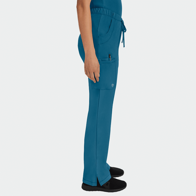 The HH REBECCA women’s scrub trousers by Healing Hands offer a stylish and comfortable design with a straight-leg silhouette and an elastic waistband with drawstrings for a secure fit.