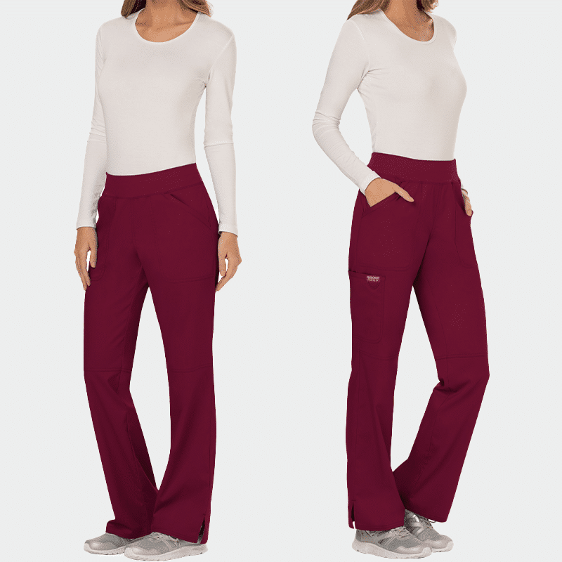Scrub trousers CHEROKEE REVOLUTION WWE110 are made of 78% polyester 20% viscose and 2% elastane with a density of 170g/m², which allows a lot of freedom of movement and comfort throughout the day. Medical scrub trousers of a breathable fabric, which prevents sweating and makes you feel safe and confident at work. They are suitable for the daily work of doctors, nurses, dentists, pharmacists, veterinarians, medical staff, workers and students.