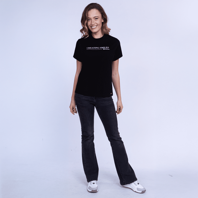 The design of the Creating Smiles women’s T-shirt features luxurious “Creating Smiles” embroidery and is created to deliver all-day comfort. The fine embroidery details add sophistication and style, making it the perfect choice for both everyday wear and special occasions. With its comfortable loose fit, the T-shirt pairs well with a variety of outfits and styles. To preserve its quality, we recommend washing at 30°C, turned inside out.