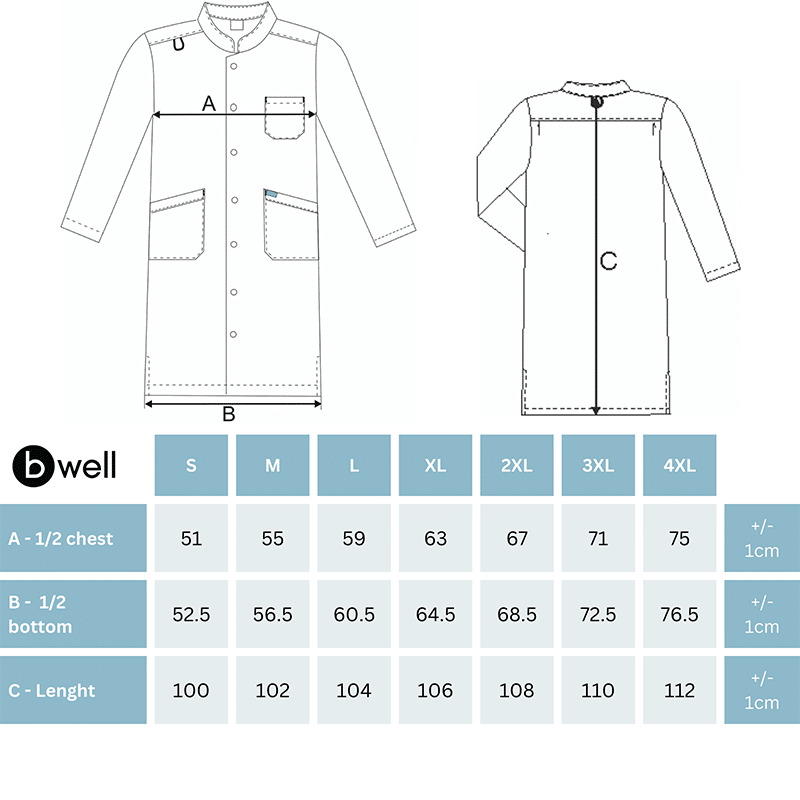 Η ιατρική ρόμπα ANTONIO συνδυάζει λειτουργικότητα και σύγχρονο στυλ, αποτελώντας ιδανική επιλογή για ιατρούς, νοσηλευτές, φαρμακοποιούς και επαγγελματίες υγείας που χρειάζονται αξιόπιστο και ανθεκτικό ρούχο εργασίας.