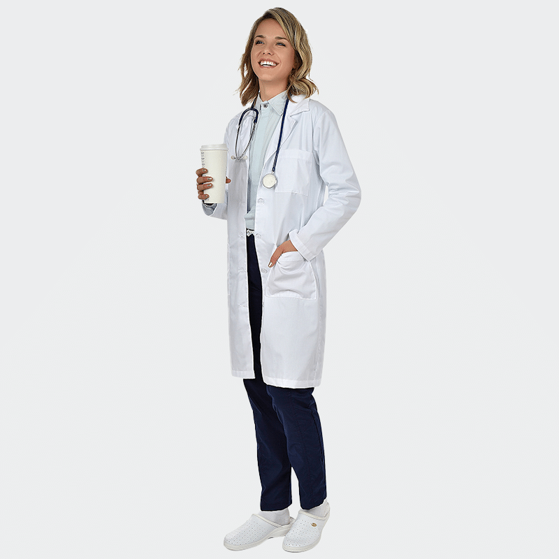 Γυναικεία ιατρική ρόμπα BIANCA της B-well. Ύφασμα πολυεστέρα-βαμβάκι, με κουμπιά, ζώνη στη μέση και 3 τσέπες.