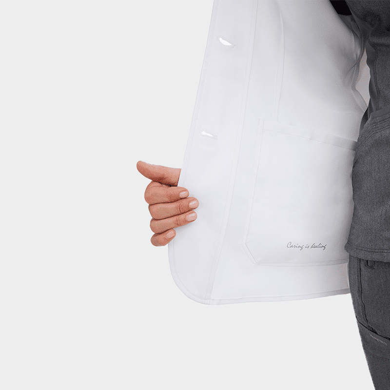 Η ιατρική ρόμπα FLO της σειράς Healing Hands είναι ένα κομψό γυναικείο παλτό εργασίας, μήκους 71 cm, σχεδιασμένο για άνεση και επαγγελματική εμφάνιση σε κάθε περίσταση.