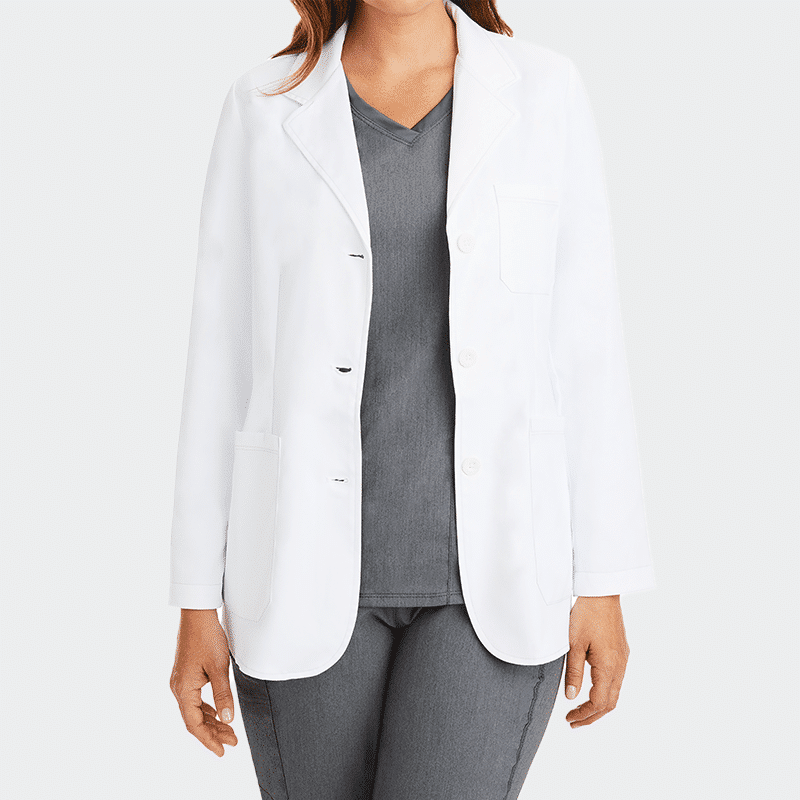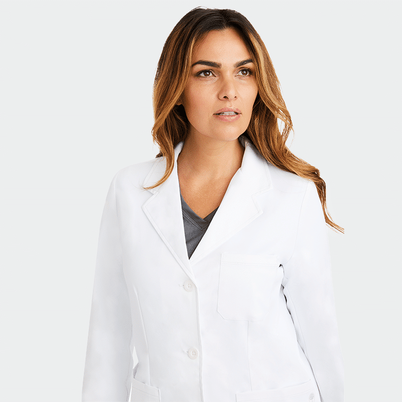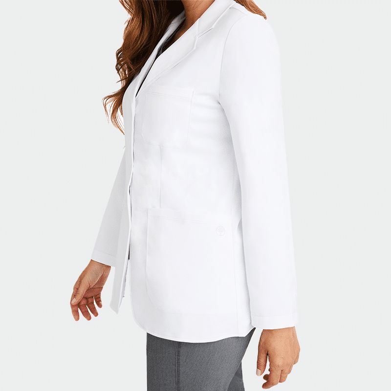 Γυναικεία ιατρική ρόμπα FLO της Healing Hands. Μήκος 71 cm, με κουμπιά και 3 τσέπες. Πολυτελές, κομψό και ανθεκτικό ύφασμα με ελαστάνη. Ιδανικό για όλες τις εποχές.