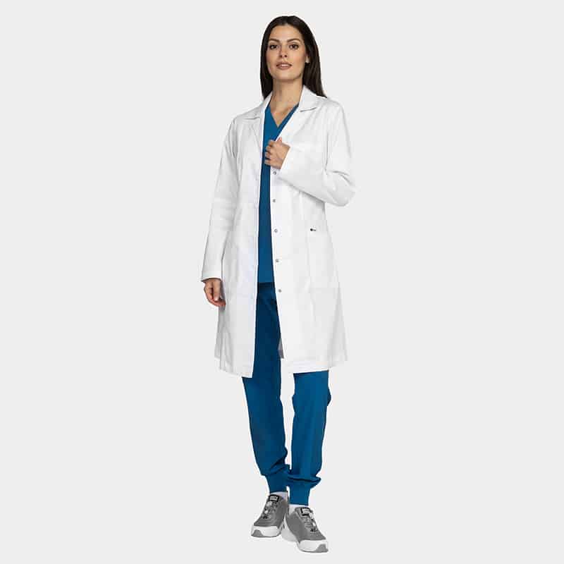 H γυναικεία ιατρική ρόμπα VALERIA new της B-well είναι ένα κομψό, λευκό παλτό εφαρμοστής γραμμής με κούμπωμα σούστες και τεχνολογία CL 60°C που διατηρεί το λευκό του χρώμα αναλλοίωτο.