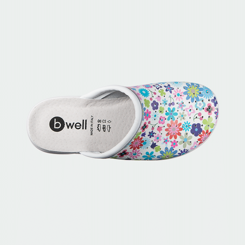 Γυναικεία ιατρικά σαμπό AERIAL Lady από δέρμα, χρώμα τύπωμα Floral Symphony, με αντιολισθητική σόλα PU και απορροφητή κραδασμών. Ελαφριά & άνετα.