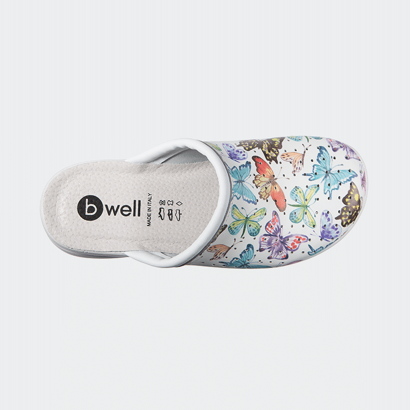 Γυναικεία ιατρικά σαμπό AERIAL Lady από δέρμα, χρώμα τύπωμα Butterfly Breeze, με αντιολισθητική σόλα PU και απορροφητή κραδασμών. Ελαφριά & άνετα.