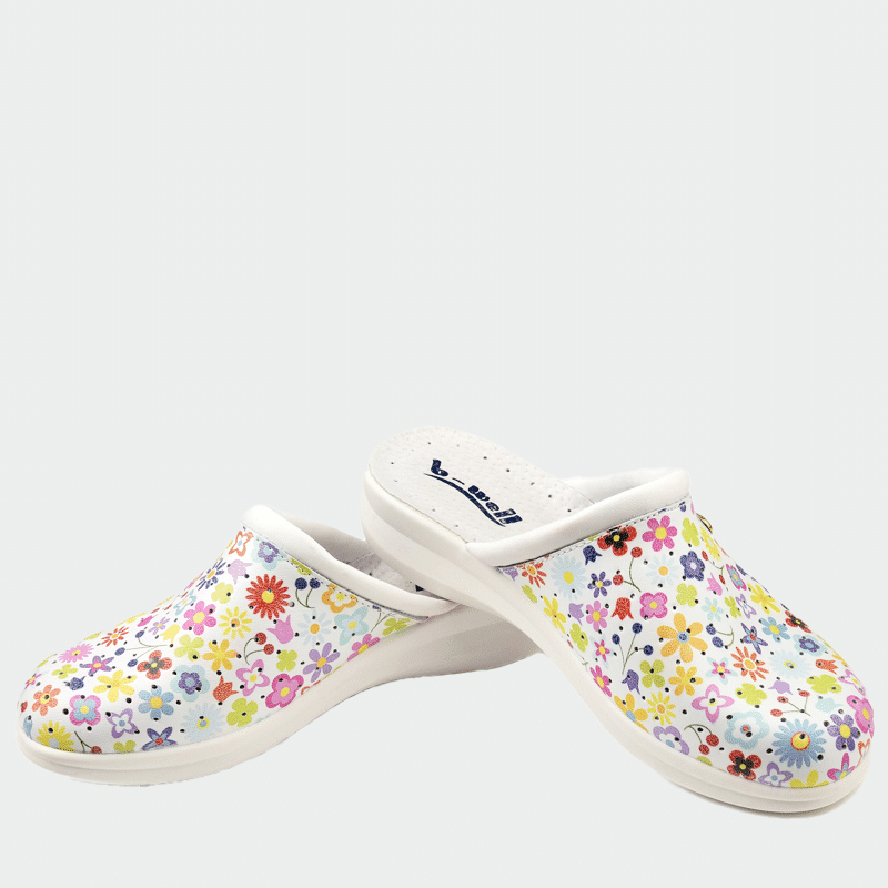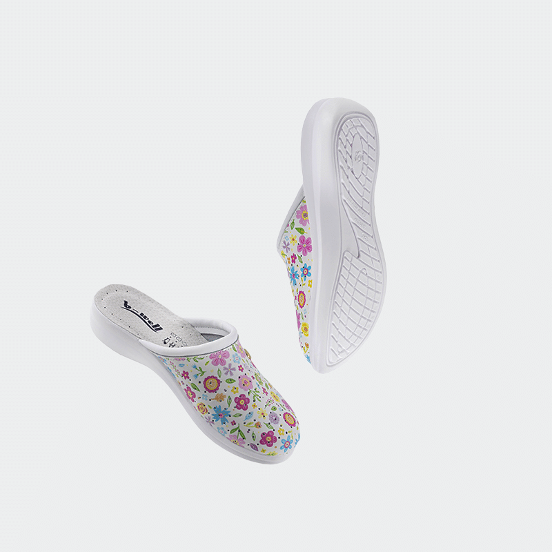 Γυναικεία ιατρικά σαμπό AERIAL Lady από δέρμα, χρώμα τύπωμα Flowers small, με αντιολισθητική σόλα PU και απορροφητή κραδασμών. Ελαφριά & άνετα.