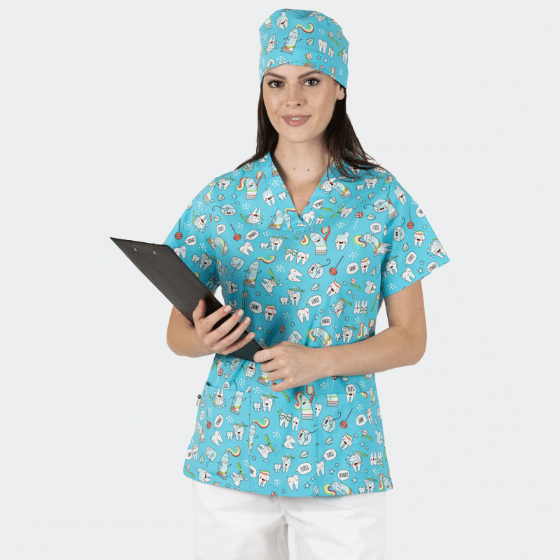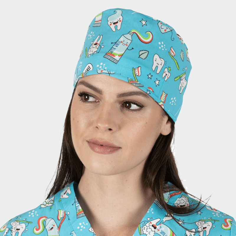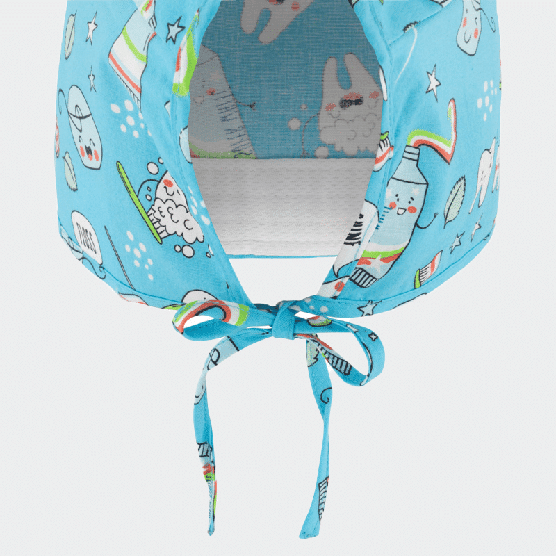 Σκουφάκι Χειρουργείου ADRIANA της B-well. Τύπωμα Blue Teeths, απορροφητικό πανί στο μέτωπο, ρυθμιζόμενο δέσιμο και μέγεθος one size. Μαλακό και διαπνέον ύφασμα.