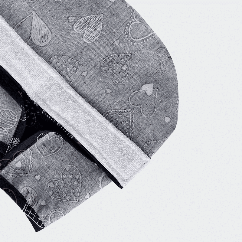Σκουφάκι Χειρουργείου ADRIANA της B-well. Τύπωμα Dark Hearts, απορροφητικό πανί στο μέτωπο, ρυθμιζόμενο δέσιμο και μέγεθος one size. Μαλακό και διαπνέον ύφασμα.