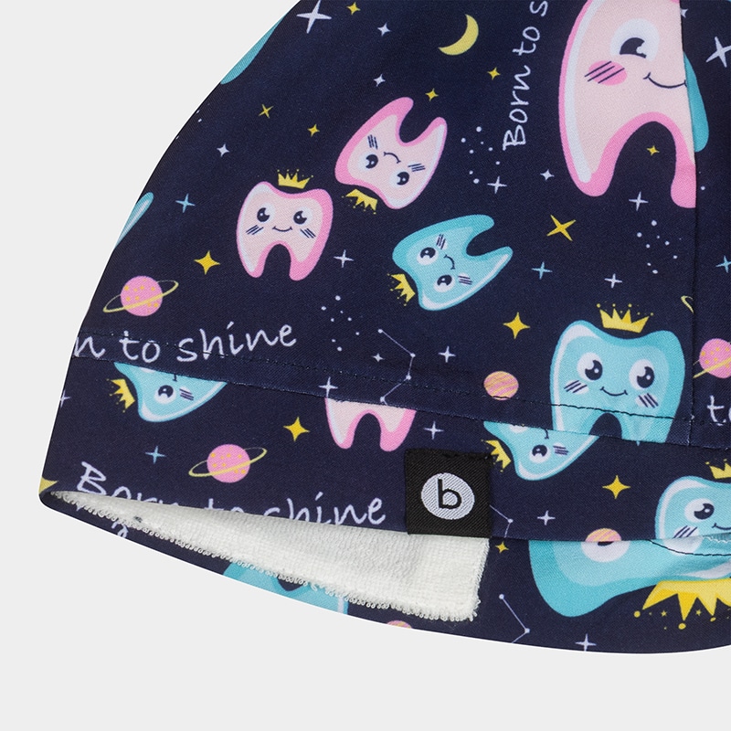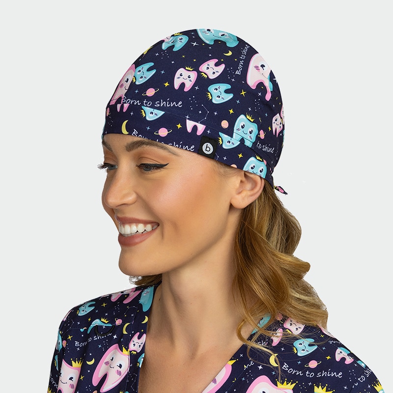 Σκουφάκι χειρουργείου MODENA της B-well. Τύπωμα Born to Shine, μοντέρνα σχέδια, απορροφητικό μέτωπο, ρυθμιζόμενο δέσιμο. One Size.