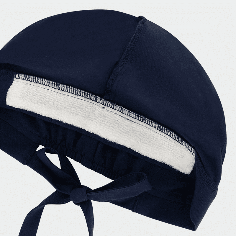 Σκουφάκι χειρουργείου Verona της B-well. Χρώμα Μπλε σκούρο, ρυθμιζόμενο με δέσιμο και πετσέτα στο μέτωπο. Unisex, σε πολλά χρώματα.