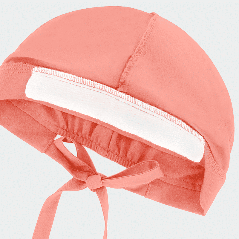 Σκουφάκι χειρουργείου Verona της B-well. Χρώμα Κοραλί, ρυθμιζόμενο με δέσιμο και πετσέτα στο μέτωπο. Unisex, σε πολλά χρώματα.