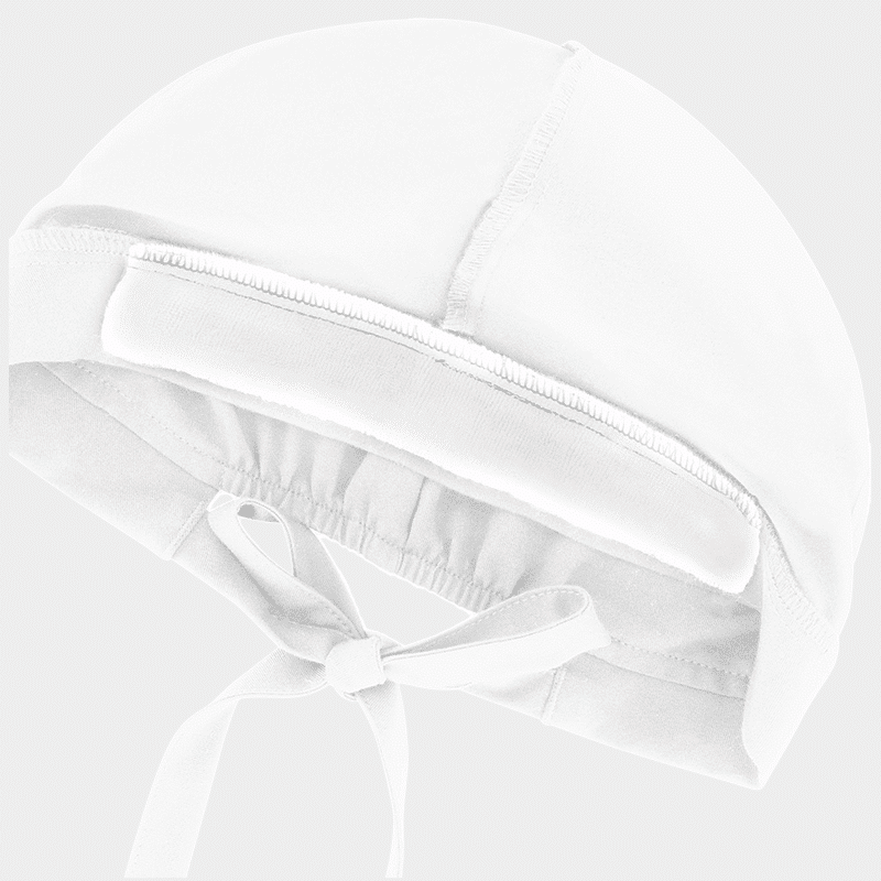 Σκουφάκι χειρουργείου Verona της B-well. Χρώμα Λευκό, ρυθμιζόμενο με δέσιμο και πετσέτα στο μέτωπο. Unisex, σε πολλά χρώματα.