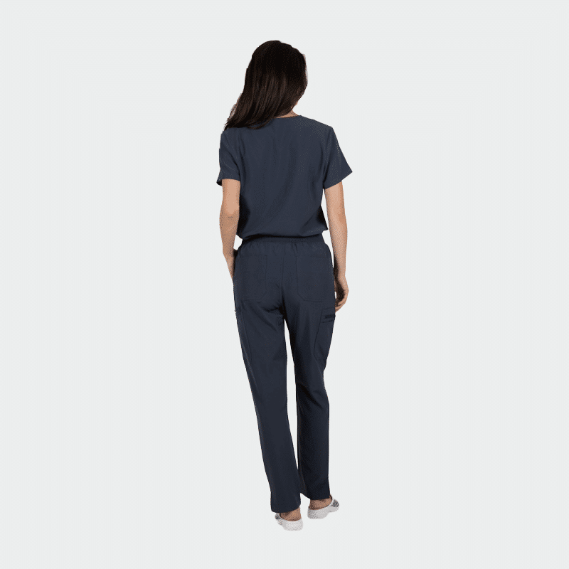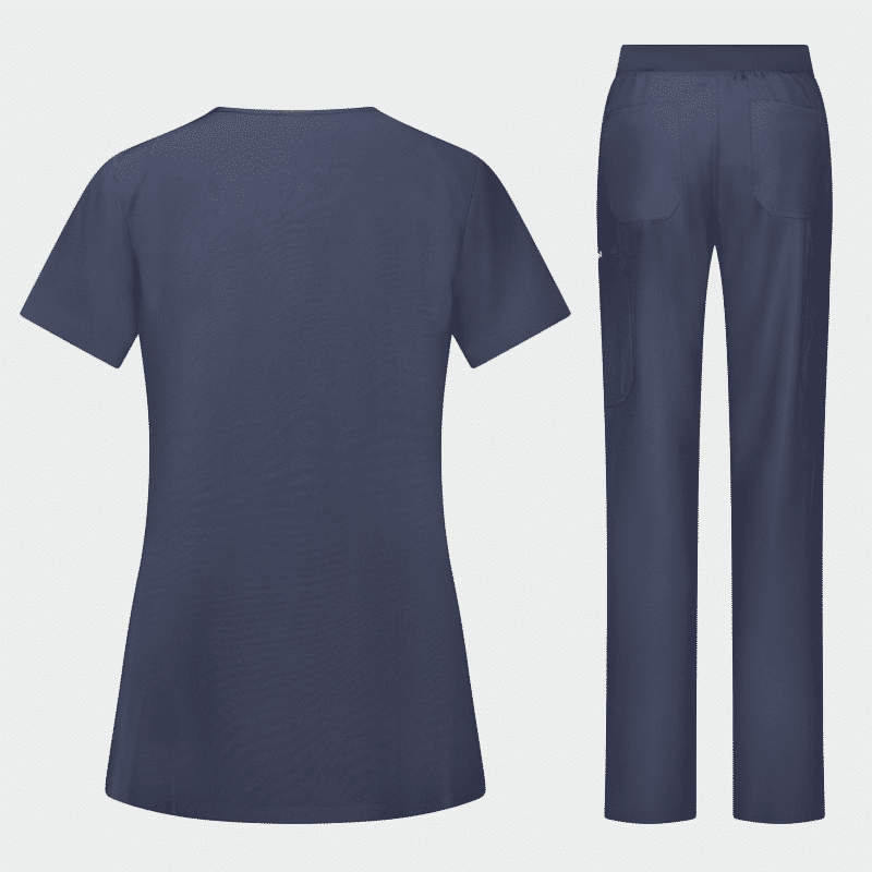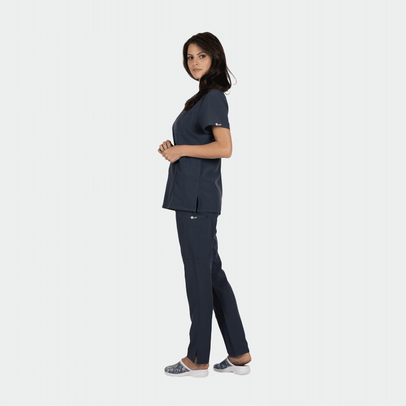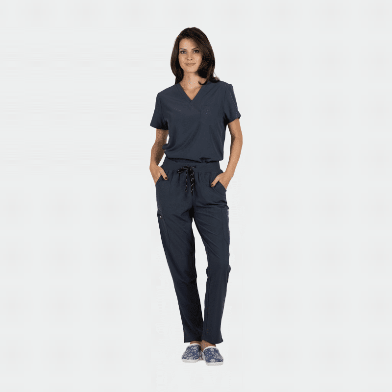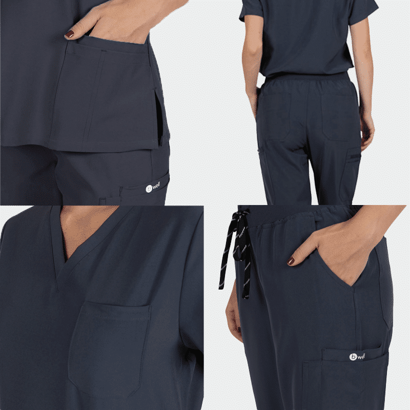 Γυναικείο ιατρικό σετ BELLA της B-well. Χρώμα Γκρι Σκουρο. Αέρινο ύφασμα, V-λαιμόκοψη, λάστιχο και κορδόνι στη μέση, πολλές τσέπες.