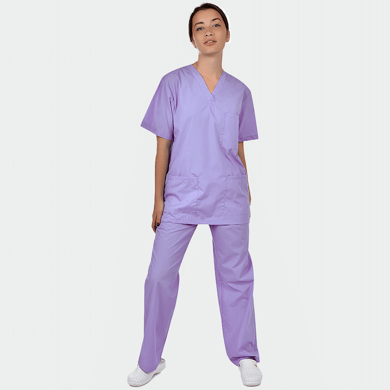 Unisex ιατρικό σετ CESARE της Bwell. Χρώμα Λιλά. Διαθέσιμο σε 8 χρώματα, διαπνέον ύφασμα, άνεση και κομψότητα όλη μέρα.