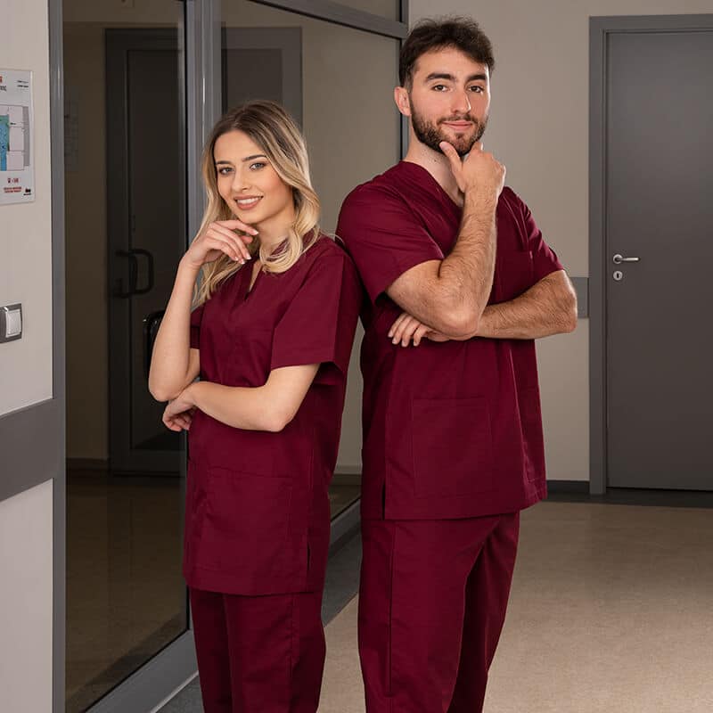 Ιατρικό σετ COLOMBO της B-well. Χρώμα Μπορντό. Unisex, με άνετη γραμμή και V-λαιμόκοψη. Ανθεκτικό ύφασμα με CL 40°C. Ιδανικό για φθινόπωρο-χειμώνα.