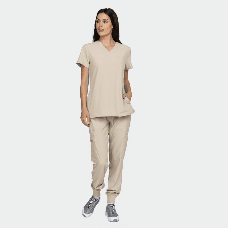 Το ιατρικό σετ NAOMI είναι μια κομψή και πρακτική επιλογή για γυναίκες επαγγελματίες υγείας. Περιλαμβάνει ιατρική μπλούζα (Tunic) και παντελόνι τύπου jogger, κατασκευασμένα από υψηλής ποιότητας ύφασμα που προσφέρει άνεση και ελευθερία κινήσεων σε κάθε βάρδια.