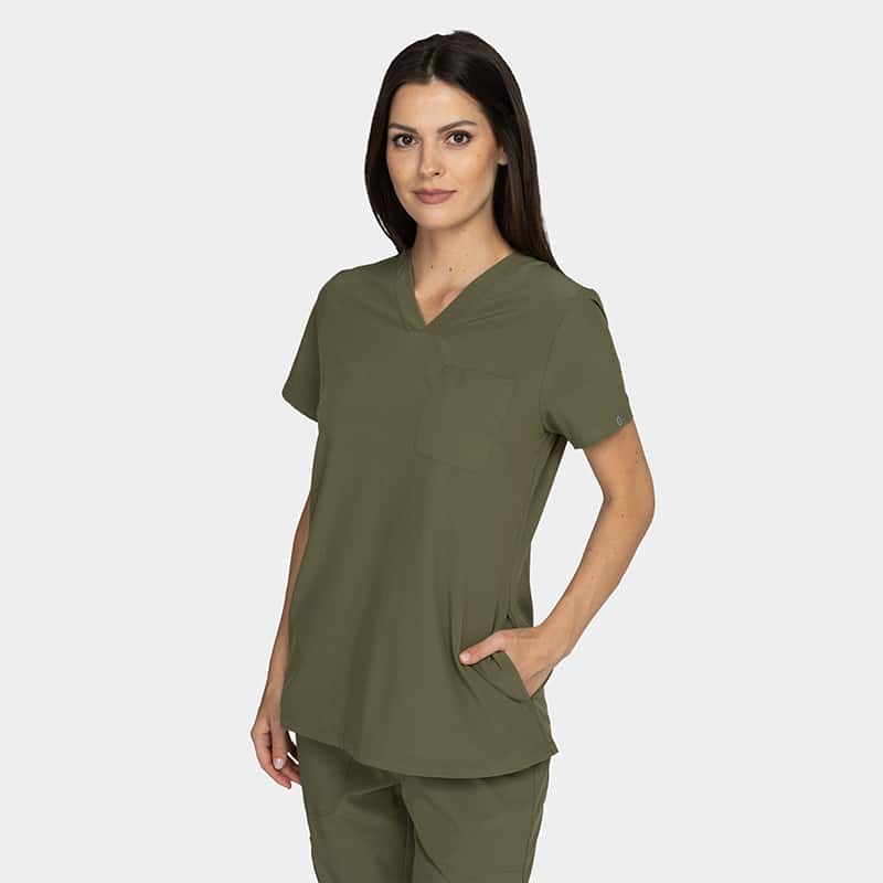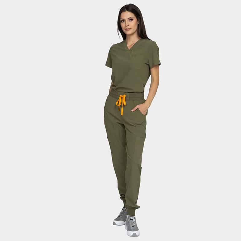 Γυναικείο ιατρικό σετ NAOMI της Bwell.  Χρώμα Λαδί. Ελαφρύ, άνετο και κομψό ύφασμα. Ιδανικό για επαγγελματίες υγείας και αισθητικής.