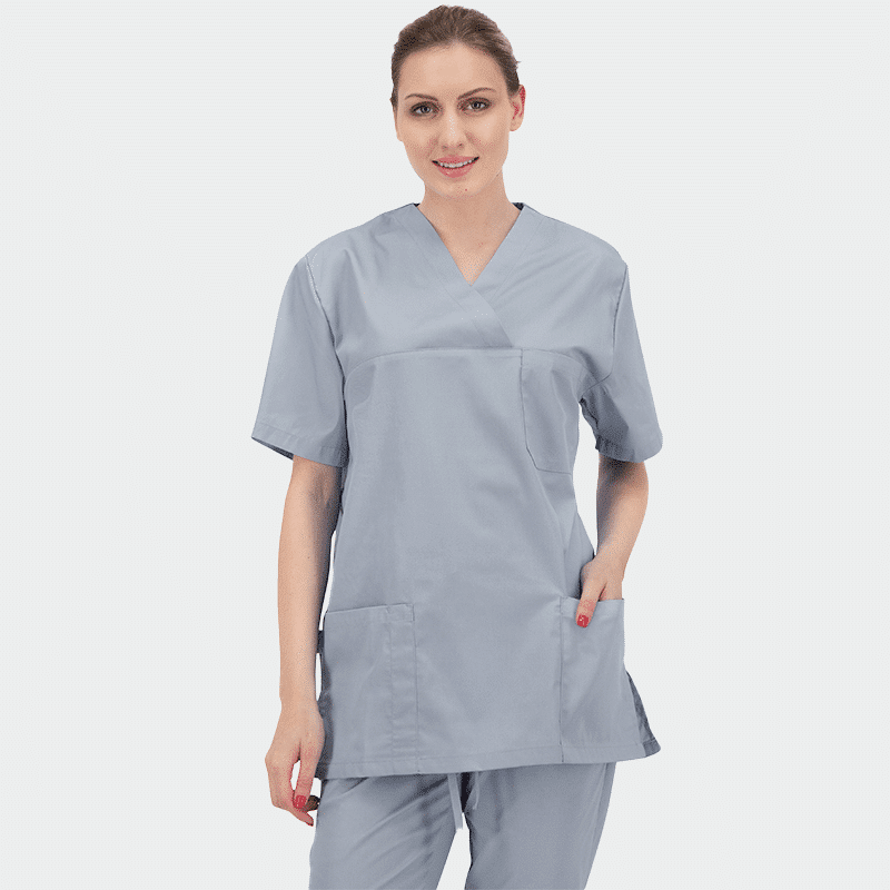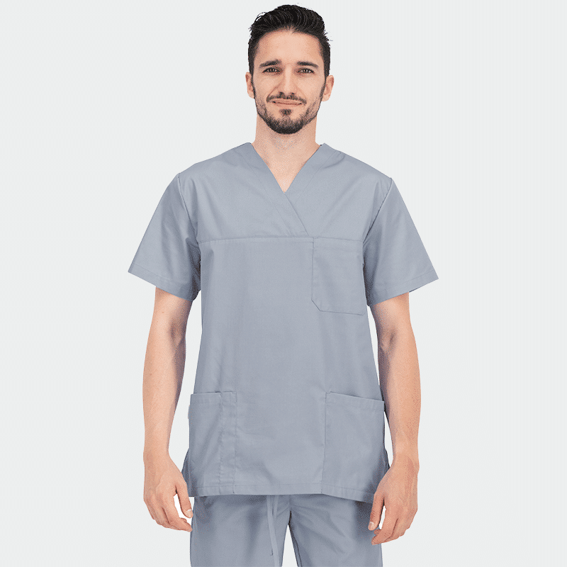 Unisex Ιατρική μπλούζα (Scrub top) ANGEL της B-well. Χρώμα Γκρι Ανοιχτό. V-λαιμόκοψη με overlap, 3 τσέπες, ενισχυμένες ραφές και CL 40°C.