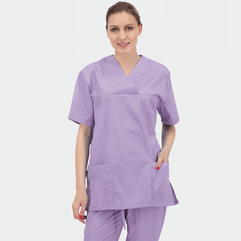 Unisex Ιατρική μπλούζα (Scrub top) ANGEL της B-well. Χρώμα Λιλά. V-λαιμόκοψη με overlap, 3 τσέπες, ενισχυμένες ραφές και CL 40°C.