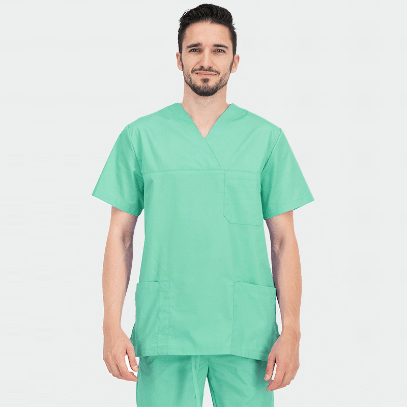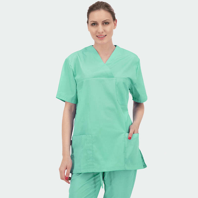 Unisex Ιατρική μπλούζα (Scrub top) ANGEL της B-well. Χρώμα Πράσινο Ανοιχτό. V-λαιμόκοψη με overlap, 3 τσέπες, ενισχυμένες ραφές και CL 40°C.