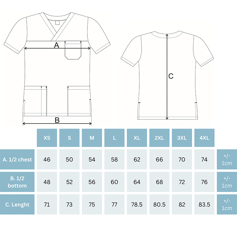 Η ιατρική μπλούζα ANGEL της B-well είναι ένα unisex scrub top με ίσια, άνετη γραμμή, κατασκευασμένο από υψηλής ποιότητας υλικά που επιτρέπουν την κυκλοφορία του αέρα πάνω και κάτω από το ύφασμα, ώστε να αποφεύγεται η εφίδρωση.