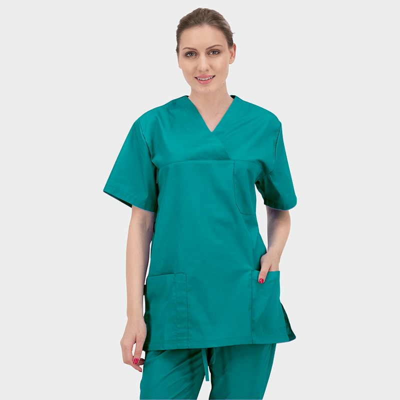 Unisex Ιατρική μπλούζα (Scrub top) ANGEL της B-well. Χρώμα Πράσινο. V-λαιμόκοψη με overlap, 3 τσέπες, ενισχυμένες ραφές και CL 40°C.