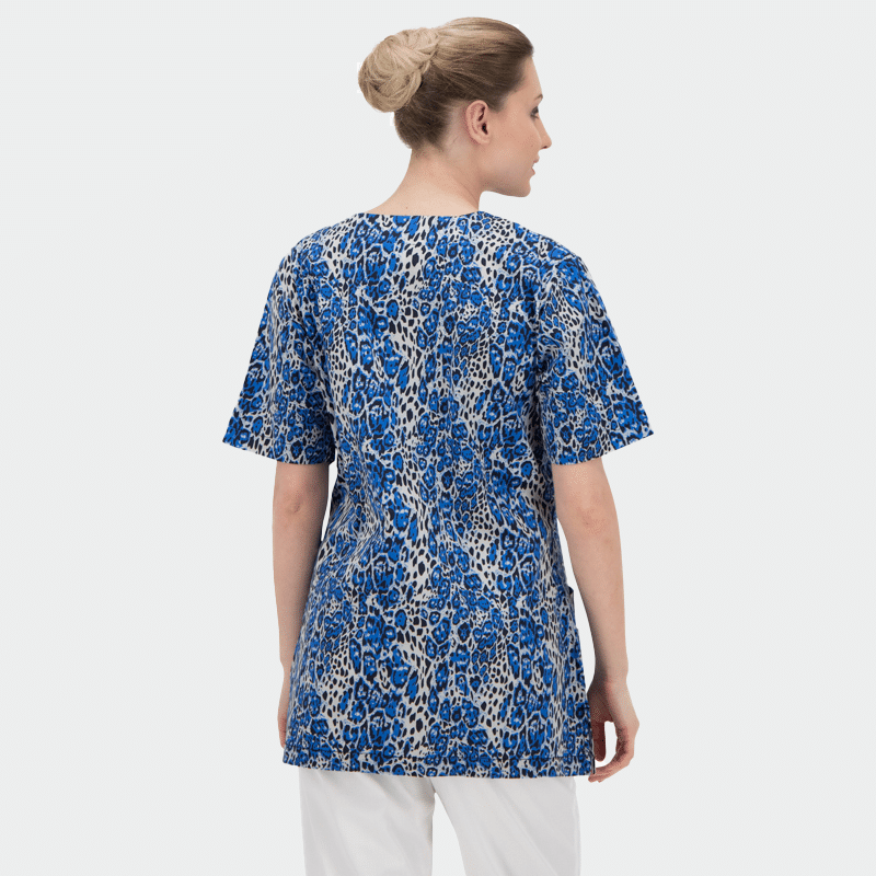 Γυναικεία Ιατρική μπλούζα (Scrub top) CARINA της B-well. Τύπωμα Leopards. Διαπνέον ύφασμα με 3D Flex και CL 40°C. Ιδανική για παιδιατρικά και οδοντιατρεία.
