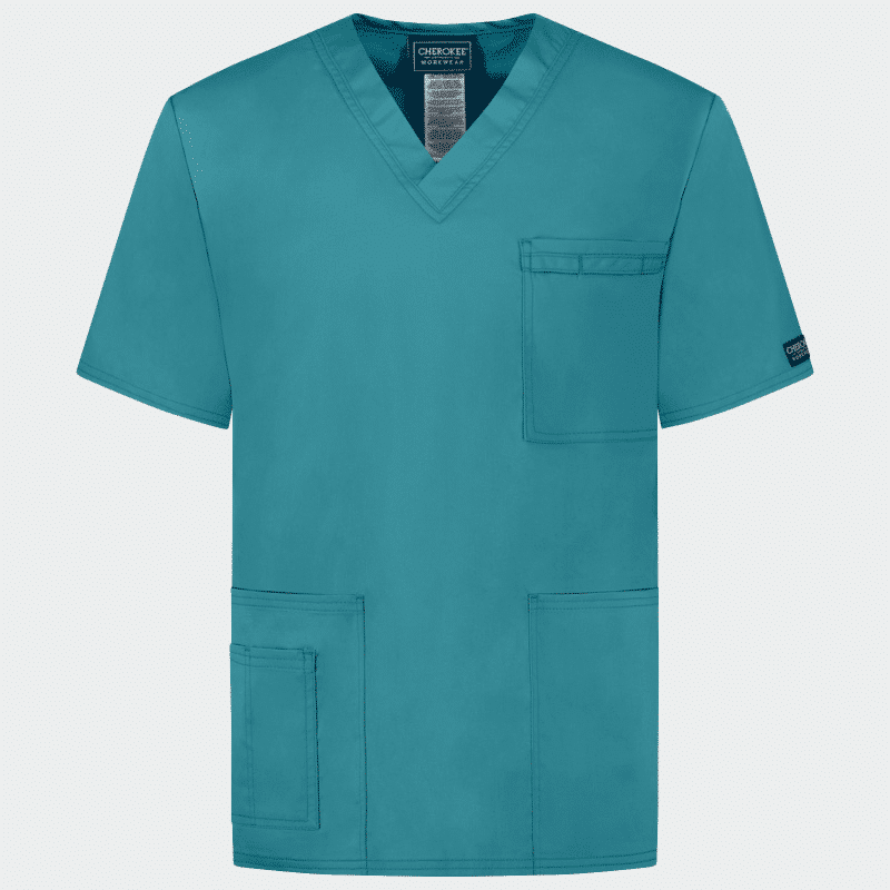 Unisex ιατρική μπλούζα (scrub top) CORE STRETCH WWE4725 της CHEROKEE. Χρώμα Πετρόλ. Με V-λαιμόκοψη, 4 τσέπες και ενισχυμένες ραφές.