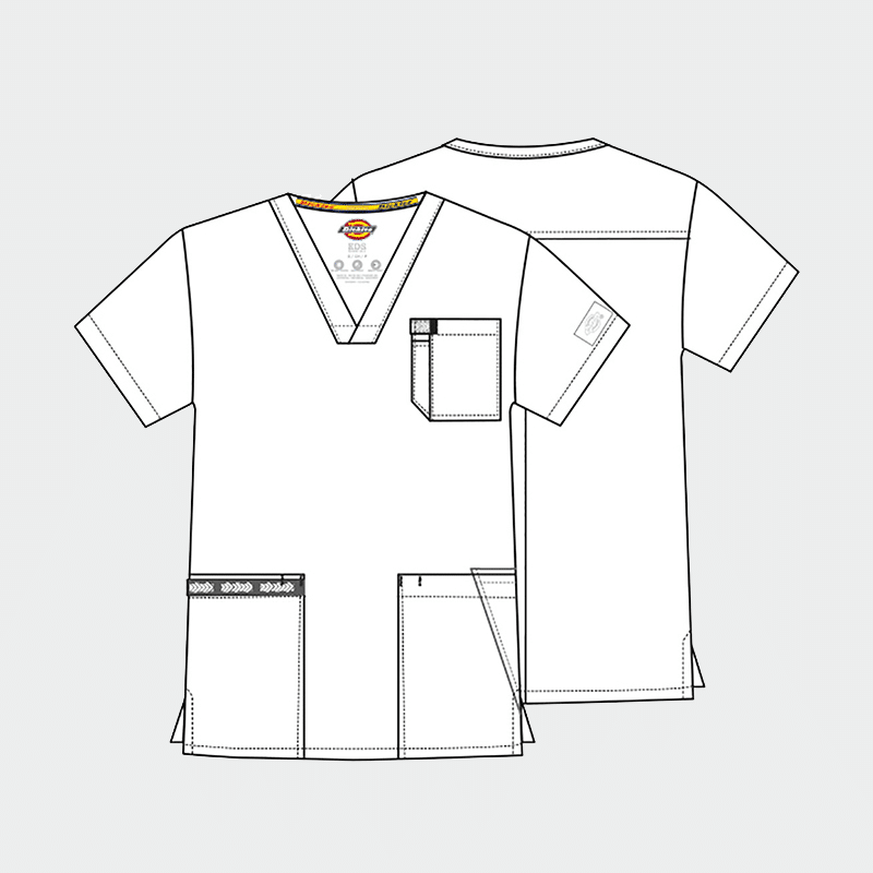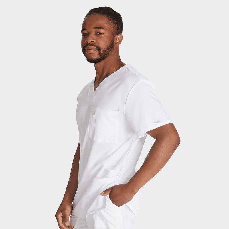 Ανδρική ιατρική μπλούζα (Scrub Top) DICKIES DKE645. Χρώμα Λευκό, Με V-λαιμόκοψη, 3+1 τσέπες και πλαϊνά ανοίγματα.