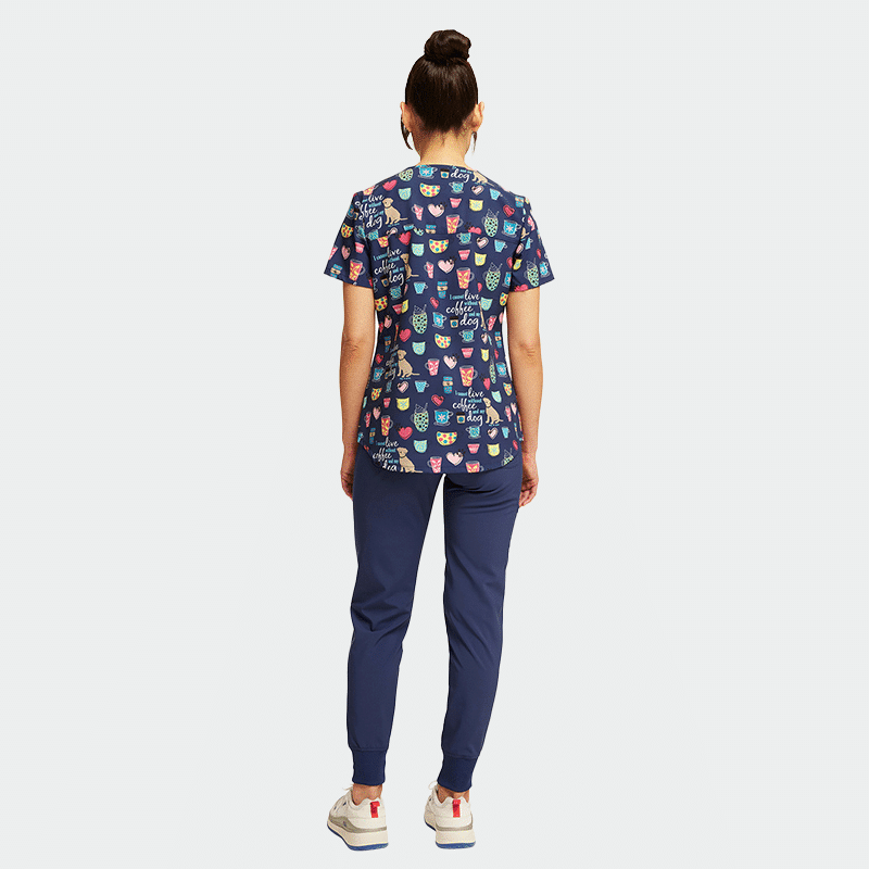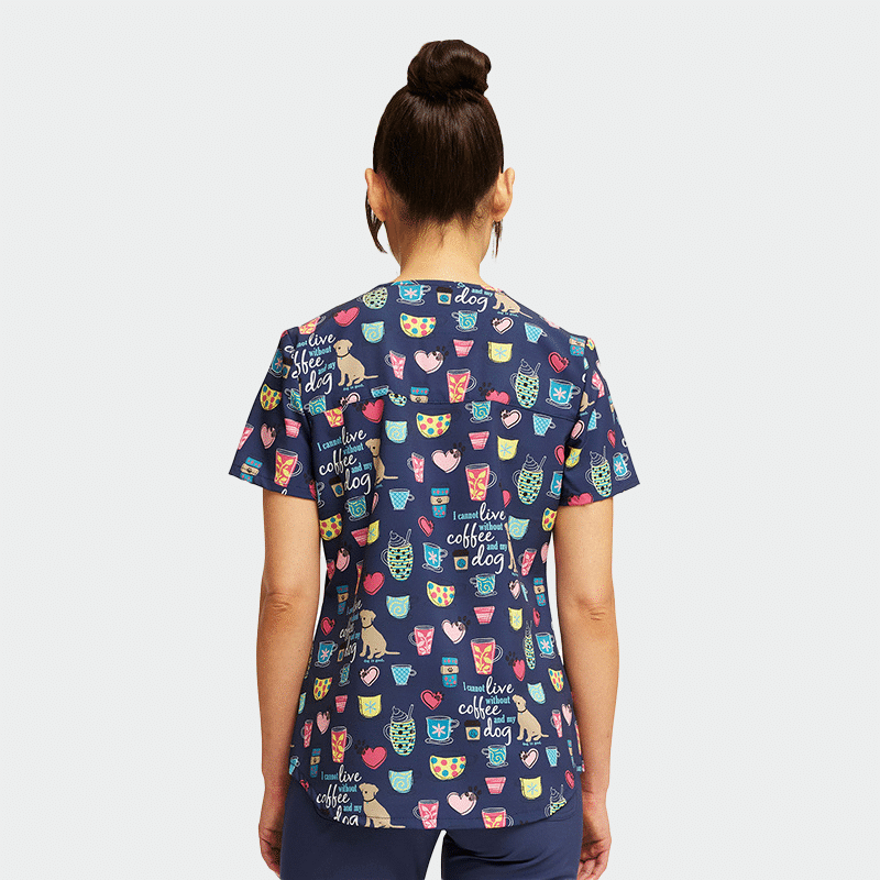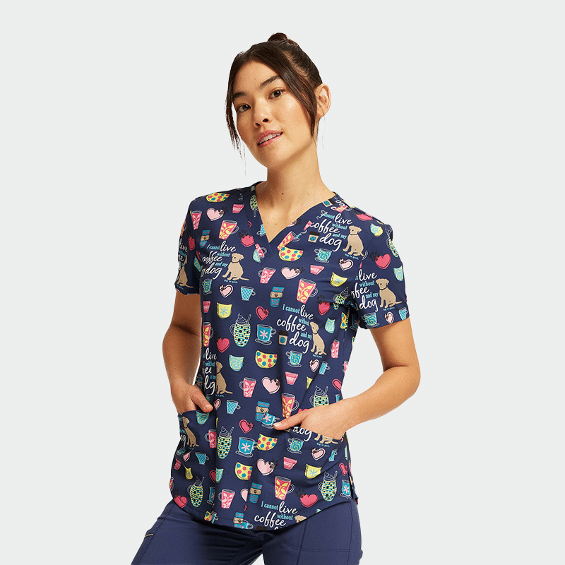 Η ιατρική μπλούζα GENUINE CK662 είναι μια κομψή γυναικεία scrub μπλούζα της CHEROKEE με εφαρμοστή σιλουέτα, V-λαιμόκοψη και μοντέρνο εμπριμέ σχέδιο. Είναι κατασκευασμένη από 91% πολυεστέρα και 9% ελαστάνη – 175 g/m², που προσφέρει άνεση, ευελιξία και αντοχή.