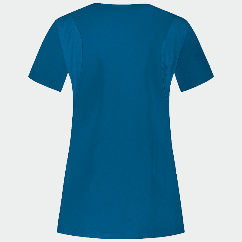 Γυναικεία ιατρική μπλούζα JUSTINA της Bwell. Χρώμα Μπλε Καραϊβικής. Με sharp λαιμόκοψη, τσέπες & ελαστικά κομμάτια υφάσματος. Άνετη, κομψή & πρακτική για επαγγελματίες υγείας & αισθητικής.