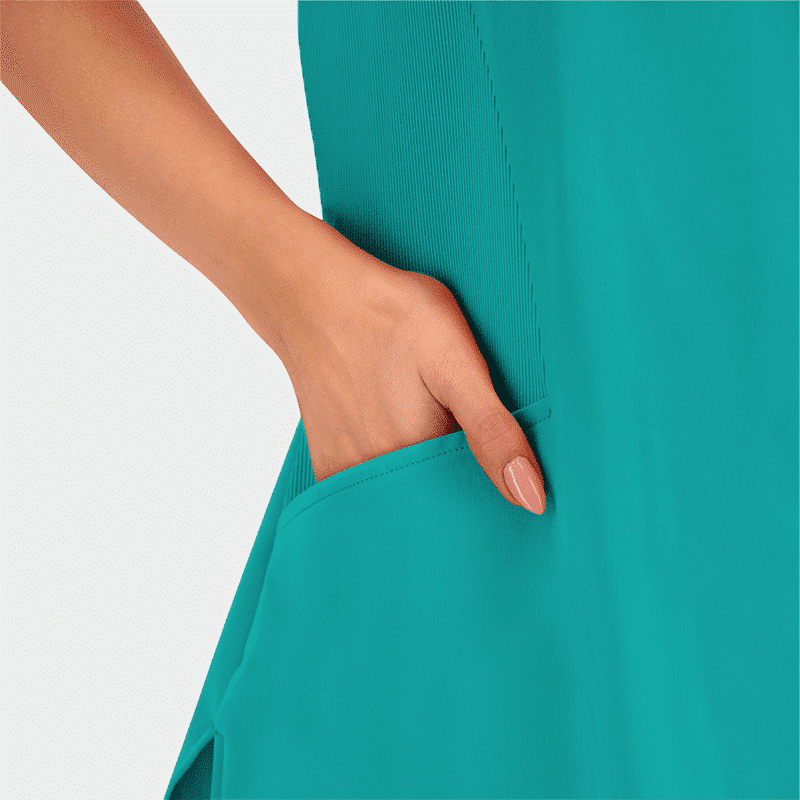 Γυναικεία ιατρική μπλούζα JUSTINA της Bwell. Χρώμα Πετρόλ. Με sharp λαιμόκοψη, τσέπες & ελαστικά κομμάτια υφάσματος. Άνετη, κομψή & πρακτική για επαγγελματίες υγείας & αισθητικής.