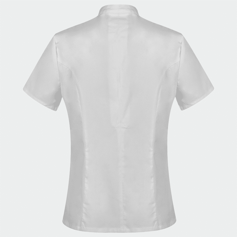Γυναικεία ιατρική μπλούζα LISA της Bwell. Χρώμα Λευκό. Με 5 τσέπες, γιακά mandarin & τεχνολογία 3D Flex.