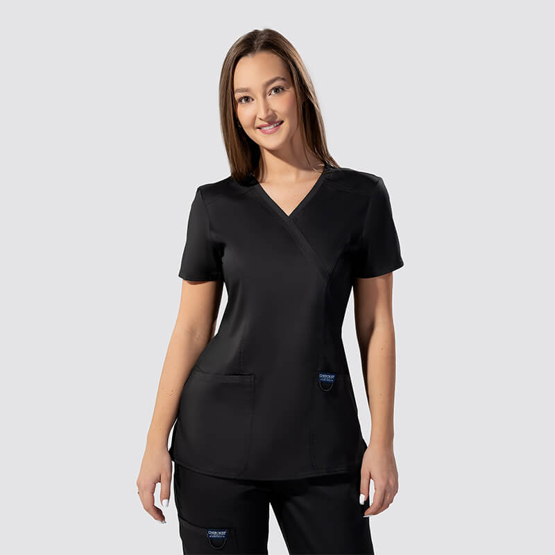Γυναικεία ιατρική μπλούζα Cherokee REVOLUTION WWE610. Χρώμα Μαύρο. Με V λαιμόκοψη, τσέπες και θηλάκι για κονκάρδα.