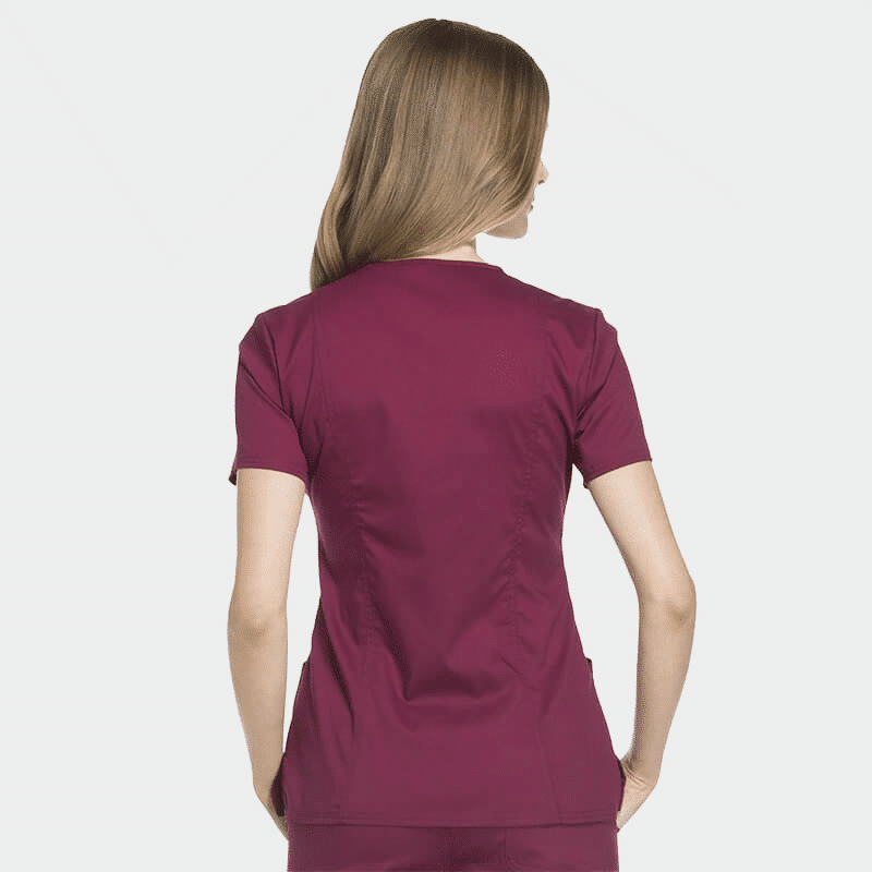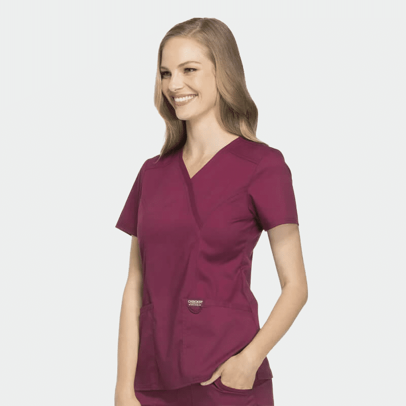 Γυναικεία ιατρική μπλούζα Cherokee REVOLUTION WWE610. Χρώμα Μπορντό. Με V λαιμόκοψη, τσέπες και θηλάκι για κονκάρδα.