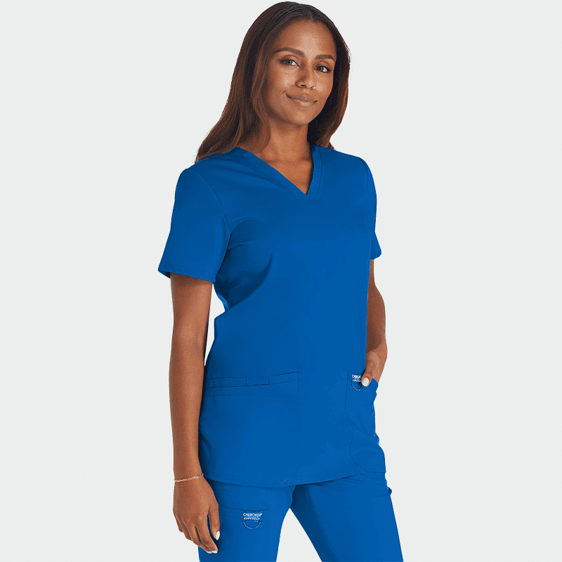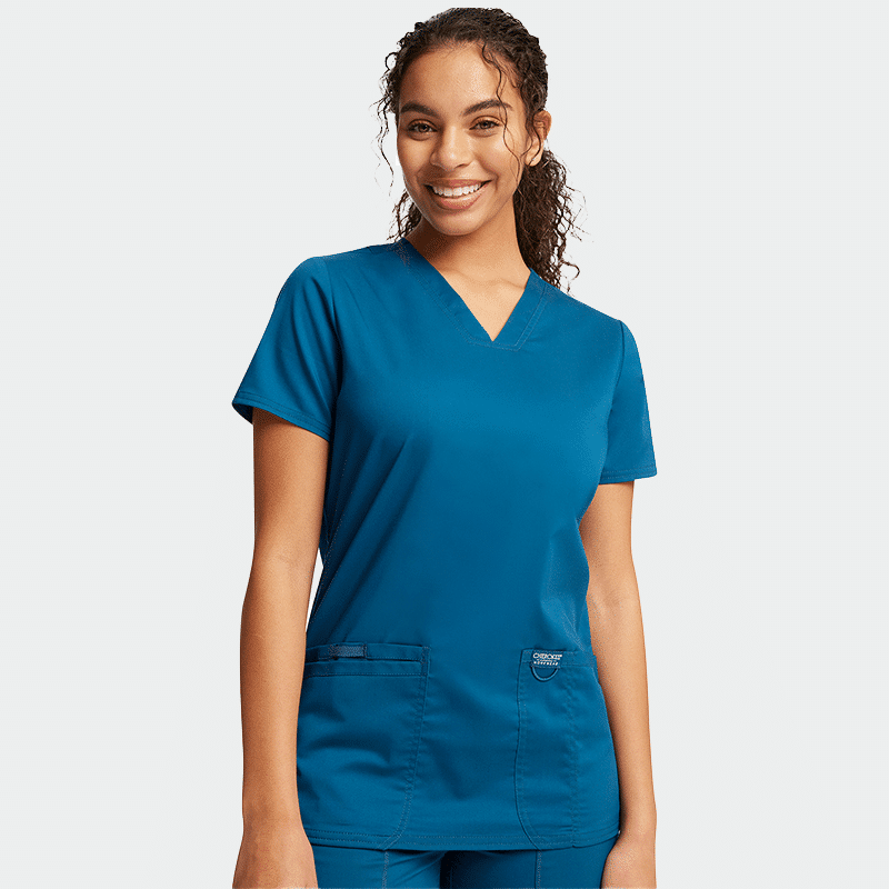 Γυναικεία ιατρική μπλούζα Cherokee REVOLUTION WWE620. Χρώμα Μπλε Καραϊβικής. Με V λαιμόκοψη, τσέπες και θήκη για στυλό. Κομψή & πρακτική.