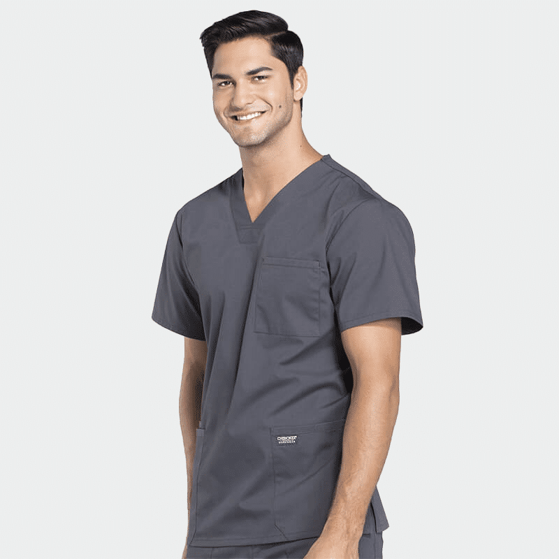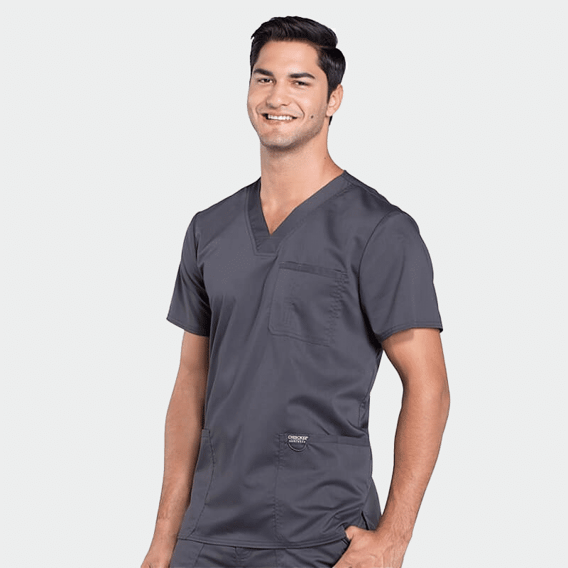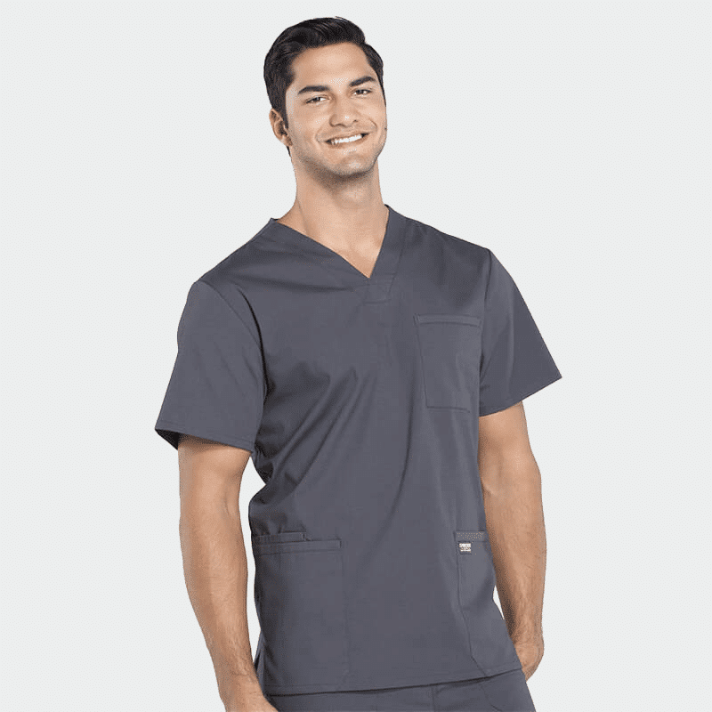 Ανδρική ιατρική μπλούζα Cherokee REVOLUTION WWE670. Χρώμα Γκρι. Με V λαιμόκοψη, ενισχυμένες ραφές & τσέπες. Άνετη και ανθεκτική.