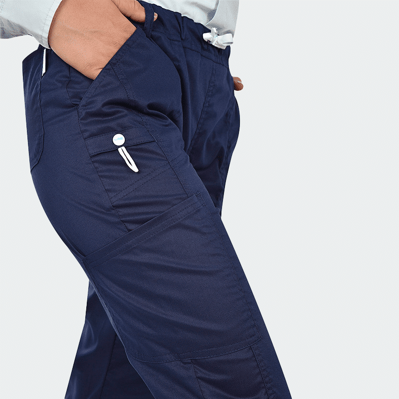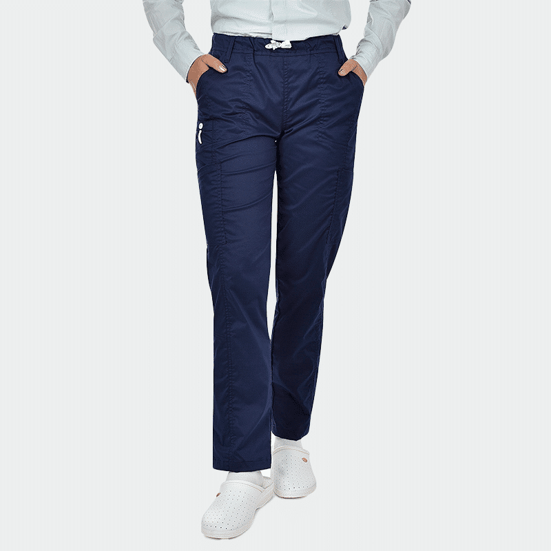 Unisex ιατρικό παντελόνι (Scrub trousers) DANTE της Bwell. Χρώμα Μπλε σκούρο.  Με 6 τσέπες, ελαστική μέση & ενισχυμένες ραφές. Bestseller με 3D Flex & CL 40°C τεχνολογία σε 8 χρώματα.