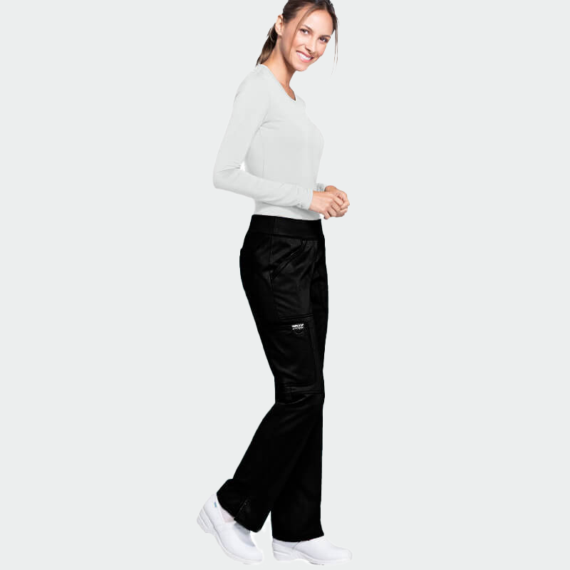 Γυναικείο ιατρικό παντελόνι CHEROKEE REVOLUTION WWE110. Xρώμα Μαύρο. Με ελαστική μέση και ίσια γραμμή. Διαπνέον ύφασμα, άνεση και στυλ για επαγγελματίες υγείας.
